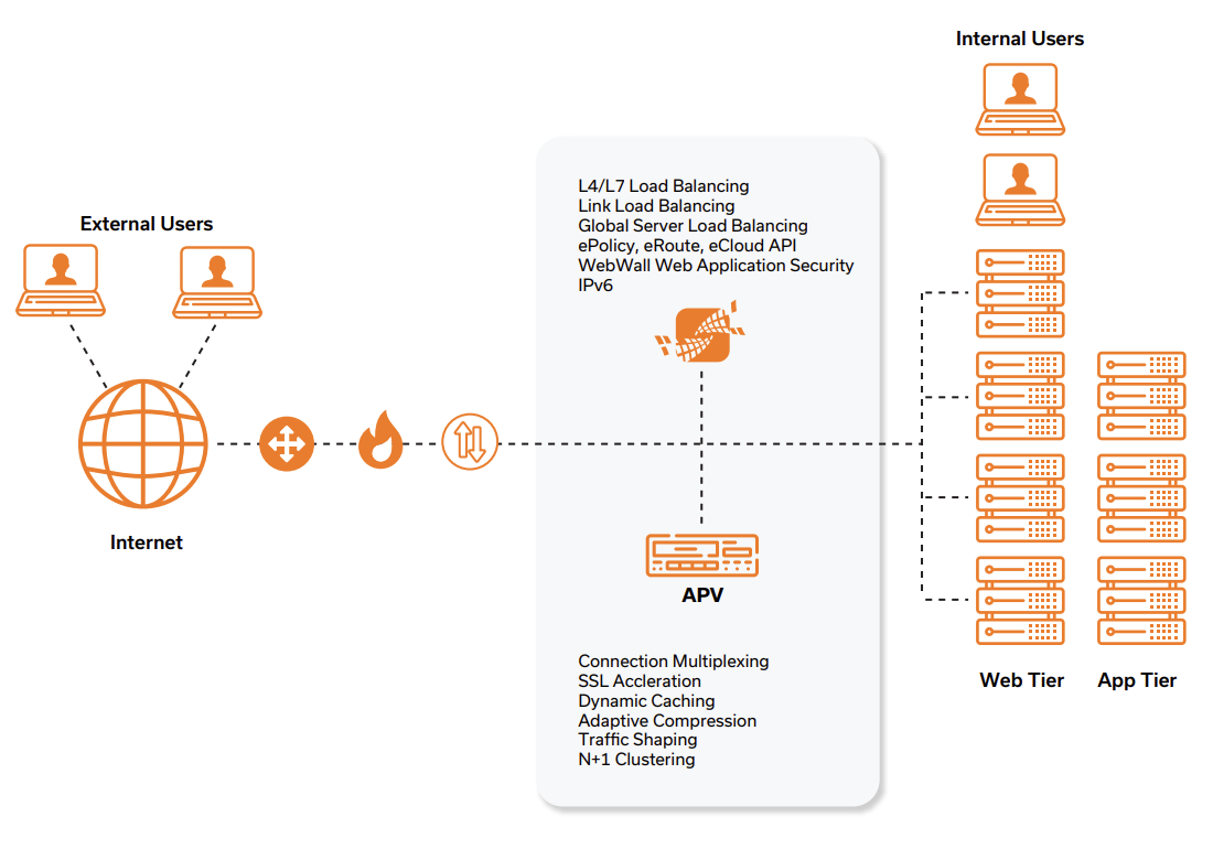 Every APV load balancer provides a complete app delivery feature set, including Layer-7 server load balancing, global server load balancing, SSL offload, connection multiplexing, compression, caching, and integrated Web application security. Available as physical or virtual appliances, or on your choice of public cloud, the APV is designed to meet technical requirements for any size business, deliver superior price performance, and be simple to deploy, manage and maintain.